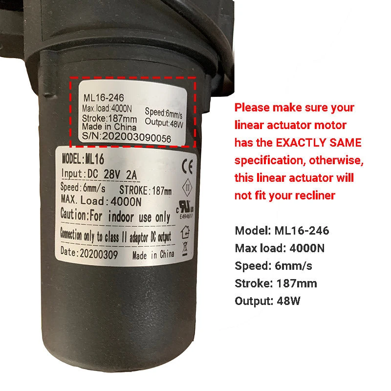 Mulin Power Recliner Motor ML16-246 Linear Actuator Compatible With Catnapper Recliner /Lift Chair/Sofa