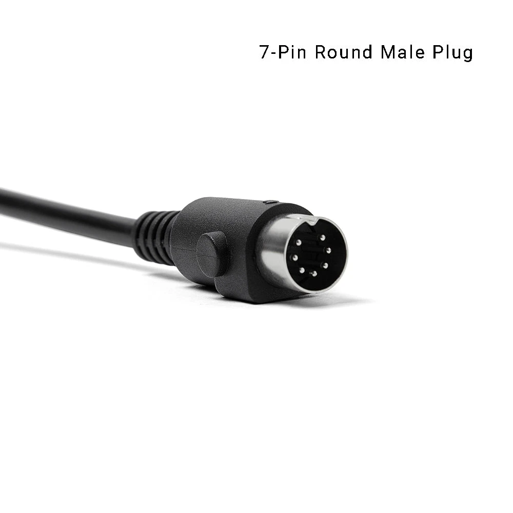- The remote controller uses a 7 pin male plug, the remote controller cord length is appr 6ft.